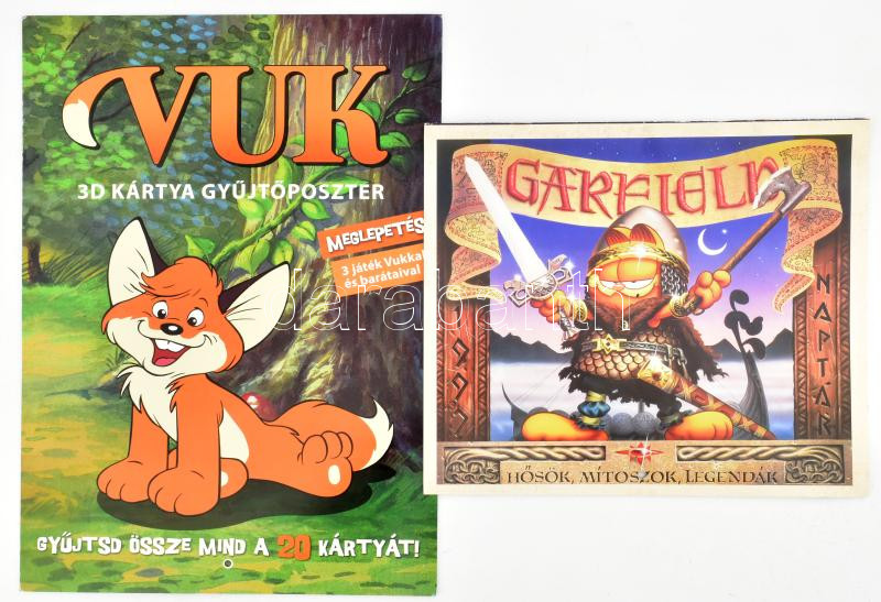 Vuk 3D kártya gyűjtőposzter, benne 4 db gyűjtőkártya, 42x29,5 cm + 1997 Garfield hősök, mítoszok, legendák naptár, 30,5x26,5 cm