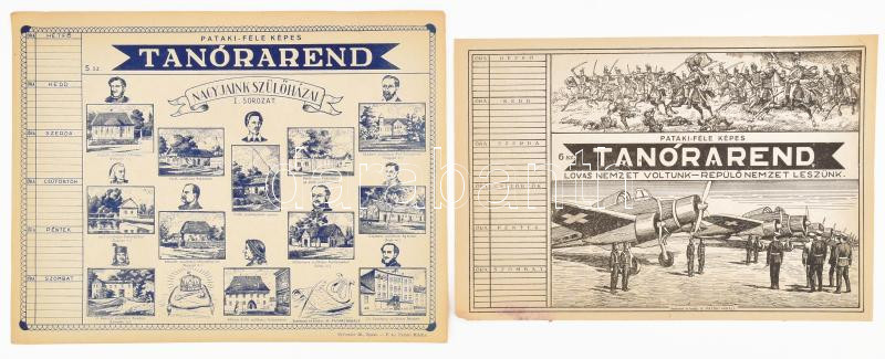 cca 1930 2 db Pataki-féle órarend, szakadásokkal