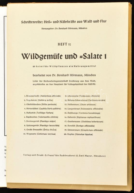 cca 1930 2 db növényképeket ábrázoló német mappa, szép feliratozott növényábrázolással kb 40 db kép saláták vadzöldségek, házi növények 20x35 cm