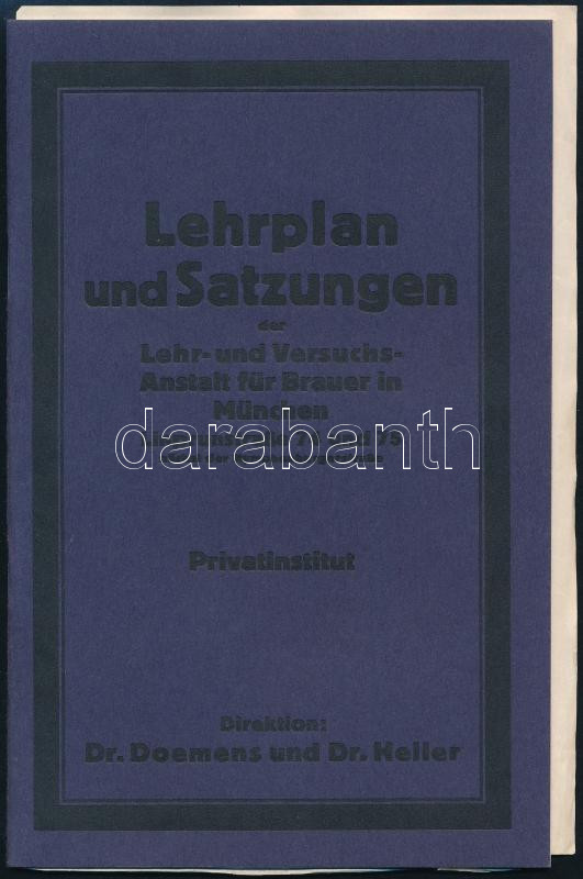 cca 1930 Lehrplan und Satzungen derl Lehr- und Versuchanstalt für Braurer in München. - Sörfőzők oktatási tananyaga 28 p / Brewery educational program