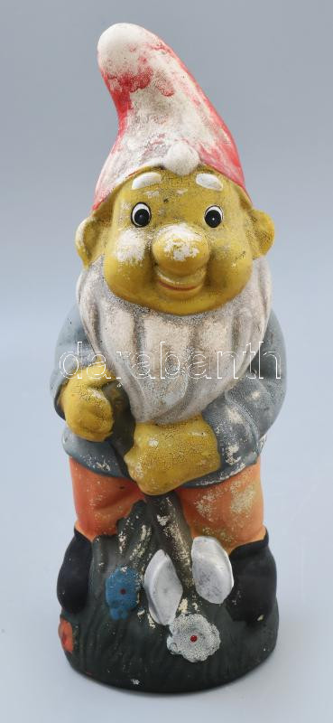 Antik kerti törpe, festett, korának megfelelő állapotban, m: 25 cm