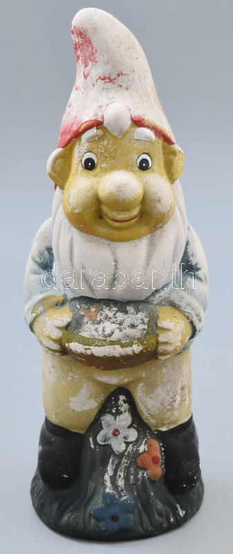 Antik kerti törpe, festett, korának megfelelő állapotban, m: 25 cm