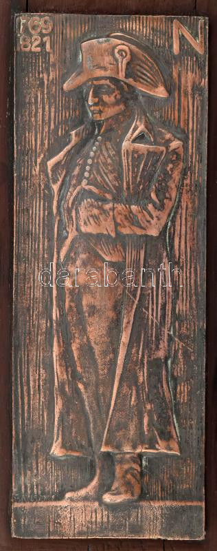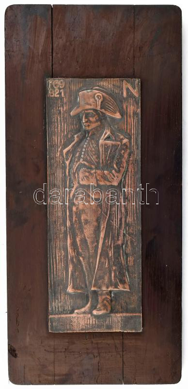 Bánszky Sándor (1888-1918): Napoleon bronz kisplasztika, fa lapon, jelzett, 31x12 cm, 48x23 cm