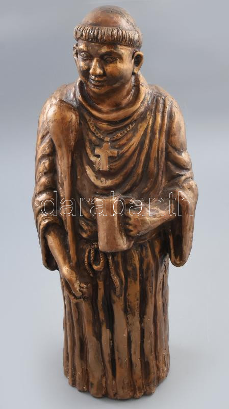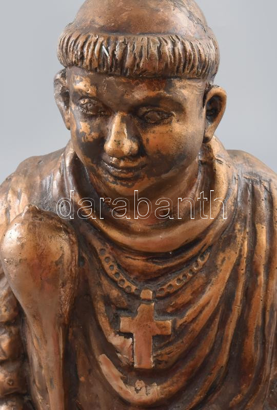 Borivó szerzetes. Nagyméretű festett gipsz szobor, kis kopással, sérült, m: 45,5 cm