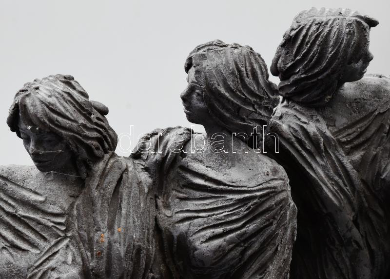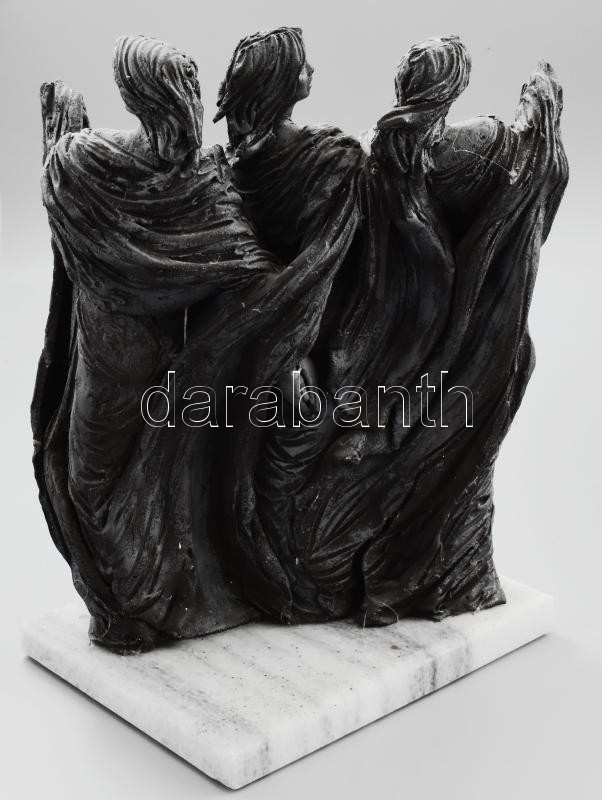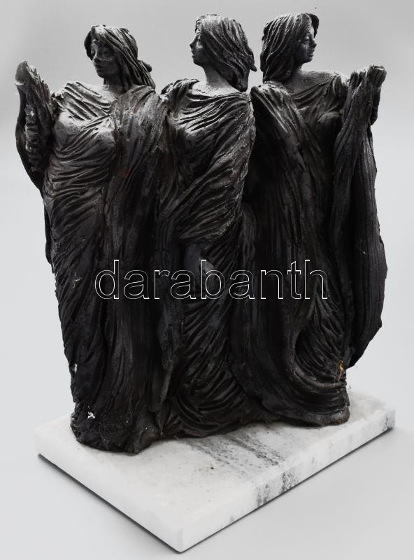 Három grácia. Festett kerámia, márvány talapzaton, jelzett, apró lepattanásokkal, kezeken sérülés, m: 30 cm