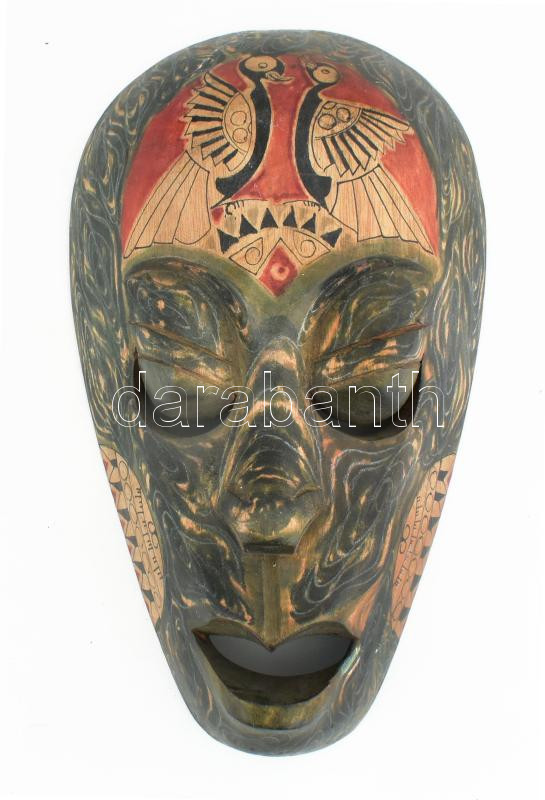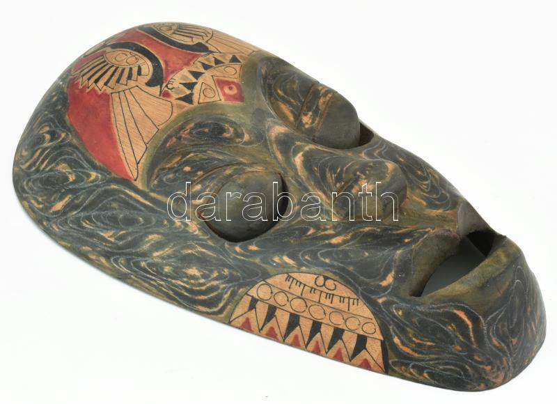 Indonézia, 20. sz., maszk, faragott fa, 33x19 cm