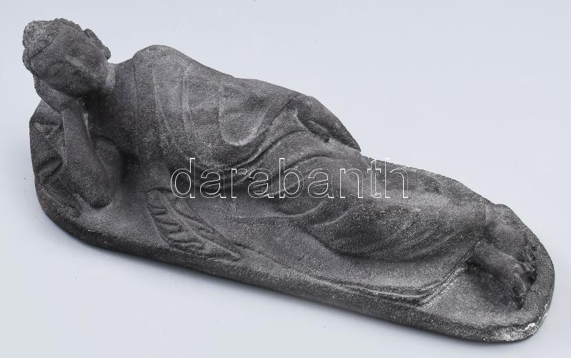 Jelzés nélkül: Fekvő Buddha. Faragott lávakő. h: 36 cm
