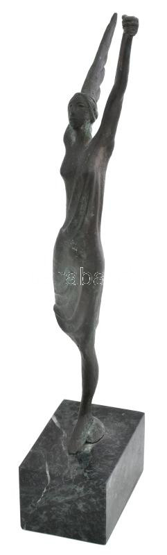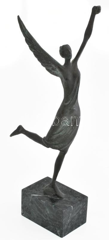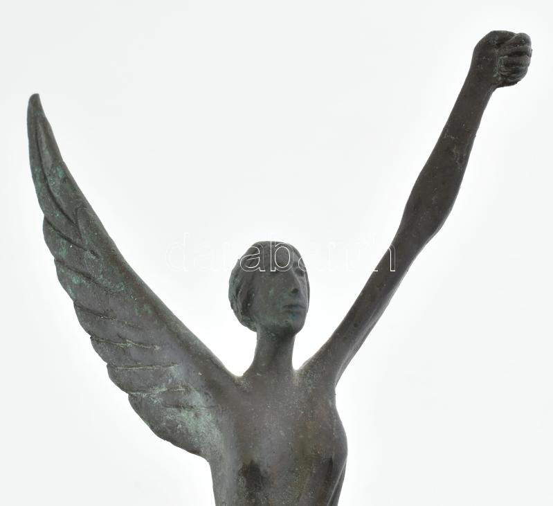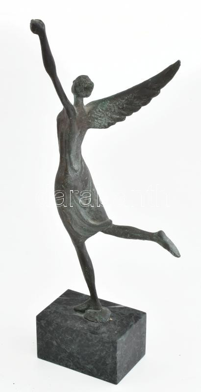 Mamikon Yengibarian (örmény, 1963-): Szárnyas nőalak. Patinázott bronz, márvány talapzaton, m: 35 cm