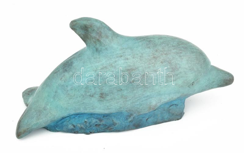 Olasz szobrász: Delfin. Öntött bronz, vastag anyagú, jelzett, h: 35x13x19 cm