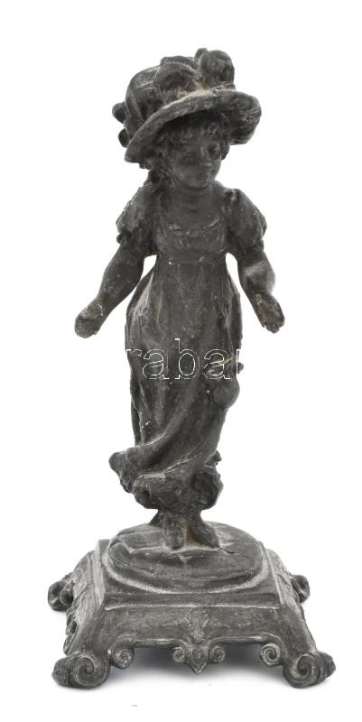 Rokokó lány figura. Fém szobor, figura 14 cm