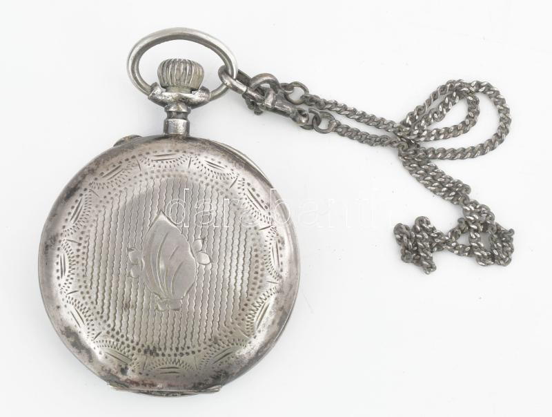 Anker járatos zsebóra ezüst (Ag) tokkal, sérült, üveg és mutató nélkül...