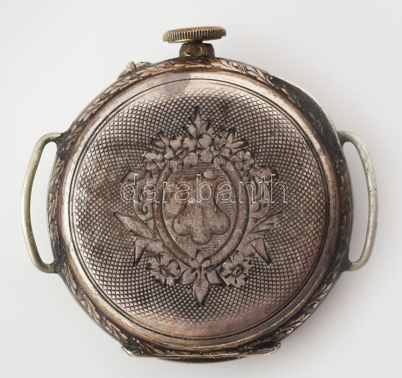 Antik zsebóra beépítés ezüst (Ag) tokban, kopással, hiányos, teljes d:...