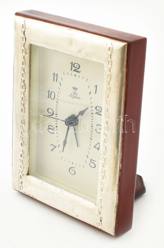 Ezüst(Ag) rátétes díszítésű óra, elemmel működik, 11,5×9 cm