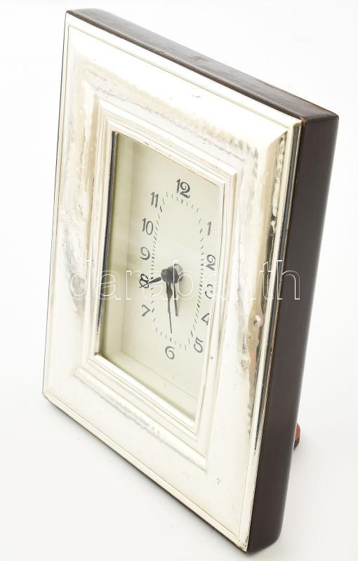 Ezüst(Ag) rátétes díszítésű óra, elemmel működik, jár, de két mutató "lebeg", 16×13 cm