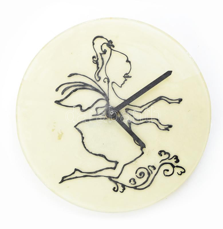 Tündéres fali quartz óra, kopásokkal, d: 21 cm