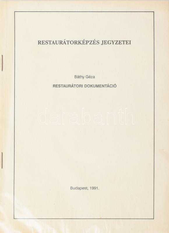 https://www.darabanth.com/en/457-Online-auction/457.0/Books/Books-Architecture-Art~2000364/Bathy-Geza-Restauratori-dokumentacio-Restauratorkepzes-jegyzetei-Bp-1991-kn-10plus2-~II3060624