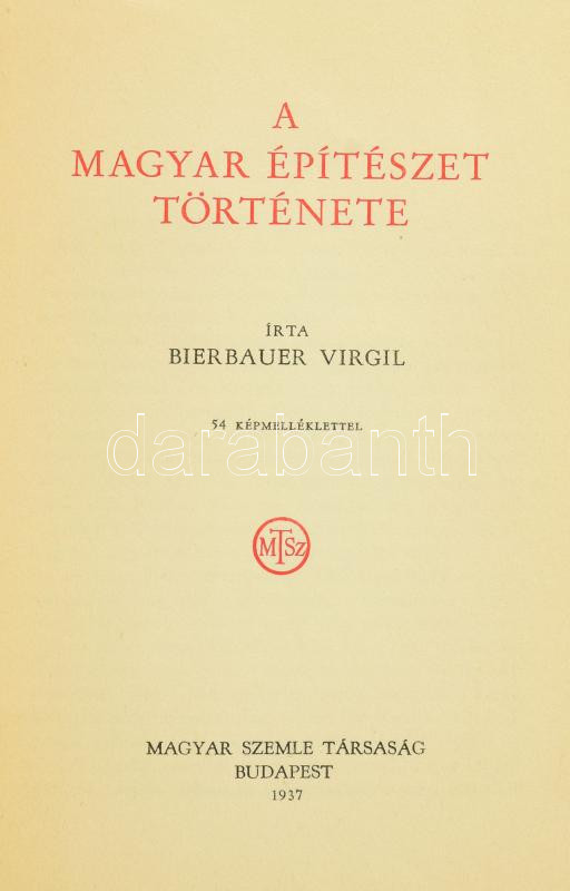 Bierbauer Virgil: A magyar építészet története. A Magyar Szemle könyve... https://www.darabanth.com/en/457-Online-auction/457.0/Books/Books-Architecture-Art~2000364/Bierbauer-Virgil-A-magyar-epiteszet-tortenete-A-Magyar-Szemle-konyvei-XIII-Bp-1937-Magya~II3035282
