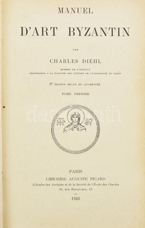 Benne Dr, Moravcsik Gyula (1892-1972) bizantinológus névbélyegzőjével. Paris, 1925, Auguste Picard, XV+480 p. Francia nyelven. Gazdag fekete-fehér képanyaggal illusztrált. Átkötött félbőr-kötésben, kopott borítóval, a gerinc hiányzik, de a könyvtest egyben van.