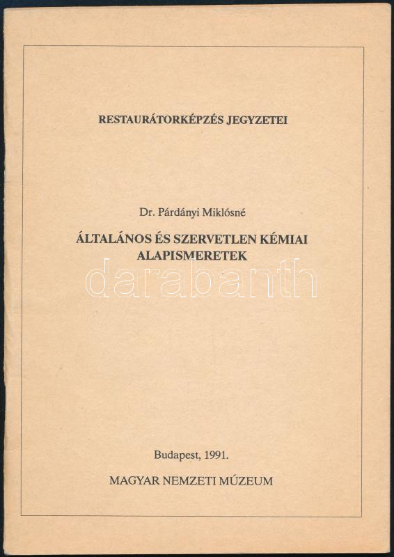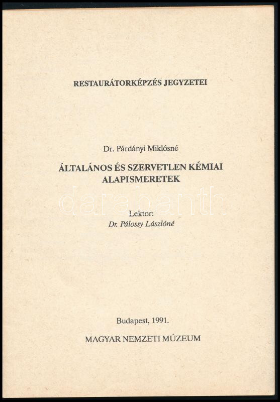 Dr. Párdányi Miklósné: Általános és szervetlen kémiai alapismeretek. R... https://www.darabanth.com/en/457-Online-auction/457.0/Books/Books-Architecture-Art~2000364/Dr-Pardanyi-Miklosne-Altalanos-es-szervetlen-kemiai-alapismeretek-Restauratorkepzes-je~II3060609