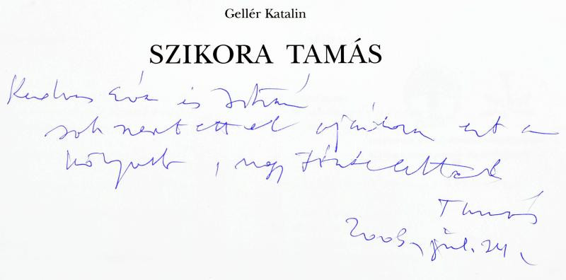 Gellér Katalin: Szikora Tamás. A művész, Szikora Tamás (1943-2012) Munkácsy Mihály-díjas festőművész, a magyar neokonstruktivizmus kiemelkedő mestere által Haraszty István "Édeske" (1934-2022), Kossuth-díjas szobrász, festőművész és felesége részére DEDIKÁLT példány. Bp., 2001, Új Művészet. Magyar és angol nyelven. Gazdag képanyaggal, a művész munkáinak reprodukcióival illusztrált. Kiadói kartonált papírkötés, kiadói papír védőborítóban.