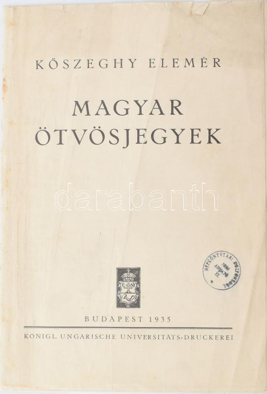 Kőszeghy Elemér: Magyar ötvösjegyek. Bp., 1935, Kir. M. Egyetemi Nyomd... https://www.darabanth.com/en/457-Online-auction/457.0/Books/Books-Architecture-Art~2000364/Koszeghy-Elemer-Magyar-otvosjegyek-Bp-1935-Kir-M-Egyetemi-Nyomda-7-p-Magyar-es-nemet-~II3059029
