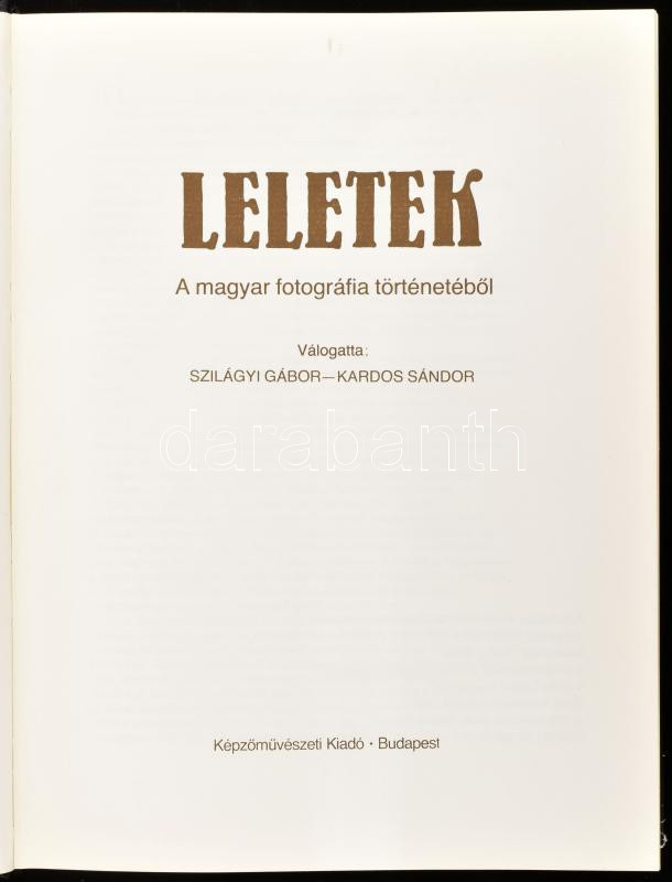 Leletek. A magyar fotográfia történetébÅ‘l. Vál.: Szilágyi Gábor, Kardos Sándor. Bp., 1983, KépzÅ‘művészeti Kiadó. Kiadói egészvászon kötésben, sérült papÃr védÅ‘borÃtóval, egyébként jó állapotban.