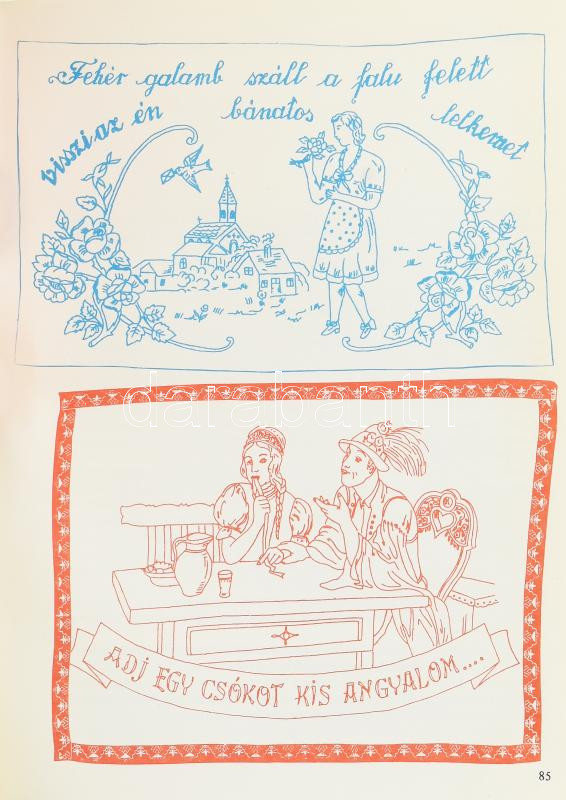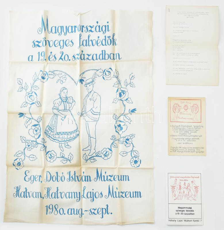 Magyarországi szöveges falvédők a 19-20. században. Szerk.: Kovács Ákos. Hatvany Lajos Múzeum No. 7. Bp., 1980, Hatvany Lajos Múzeum, 89 p. + 1 (Az asszony/férfi életének egy napja) t. Kiadói papírkötés. + 1981 Magyarországi szöveges falvédők a 19-20. században c. kiállítás Fővárosi Tanács Óbuda Galériájában nyíló kiállítás megnyitó meghívója, kihajtható prospektusa. + 1980 A "Magyarországi szöveges falvédők a 19-20. században" kiállítás látogatói véleményeinek gépelt bejegyzései, 5 p. + A "Magyarországi szöveges falvédők a 19-20. században" c. kiállítás szita technikával textilre nyomott falvédő-plakátja, 79x59 cm.
