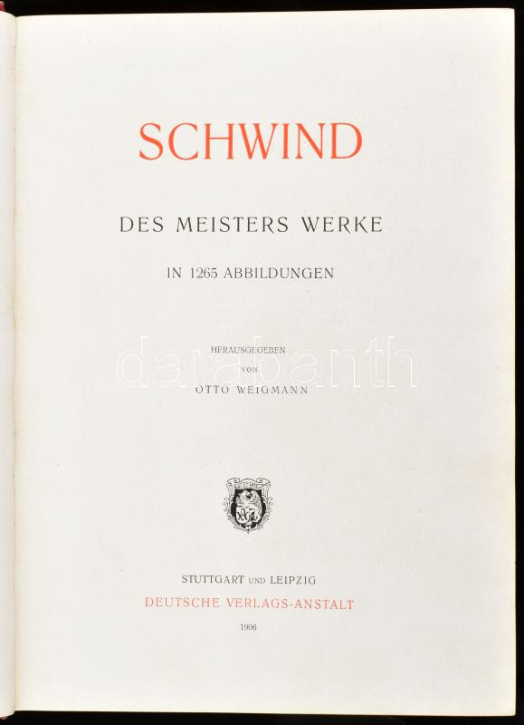 Schwind. Des Meisters Werke in 1265 Abbildungen. / Klassiker der Kunst in Gesamtausgaben. Hrsg. von Otto Weigmann. Stuttgart-Leipzig, 1906, Deutsche Verlags-Anstalt. Német nyelven. Gazdag képanyaggal illusztrált. Kiadói aranyozott egészvászon-kötés, aranyozott felső lapélekkel, a borítón kopásnyomokkal.