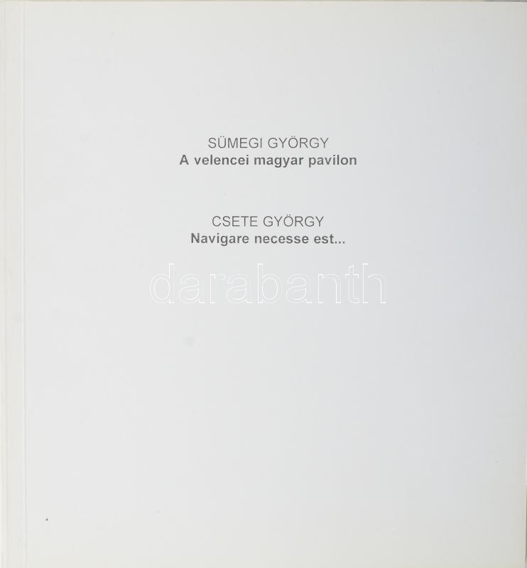 Sümegyi György: A velencei magyar pavilon. Csete György: Navigare nece... https://www.darabanth.com/en/457-Online-auction/457.0/Books/Books-Architecture-Art~2000364/Sumegyi-Gyorgy-A-velencei-magyar-pavilon-Csete-Gyorgy-Navigare-necesse-est-Gazdag-kepanyag~II3030128