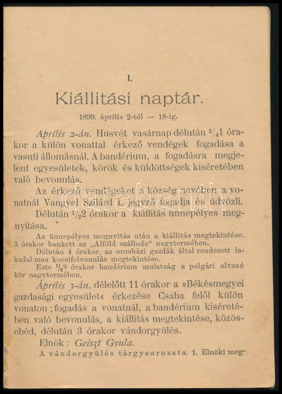 Vitéz Lajos - Nagy Lajos Az orosházi helyi iparkiállítása kalauza. Orosháza, 1899. 55p. + (52) p. reklámok. Kiadói papírkötésben
