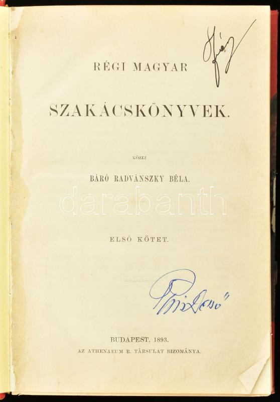 Radvánszky Béla: Régi magyar szakácskönyvek. I. kötet. (Unicus) Bp., 1... https://www.darabanth.com/en/457-Online-auction/457.0/Books/Books-Gastronomy-and-Gardening~1500024/Radvanszky-Bela-Regi-magyar-szakacskonyvek-I-kotet-Unicus-Bp-1893-Athenaeum-413p-K~II3033520