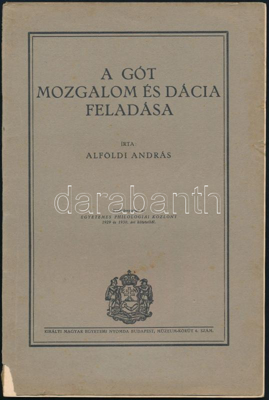 Alföldi András: A gót mozgalom és Dácia feladása. Különlenyomat az Egy... https://www.darabanth.com/en/457-Online-auction/457.0/Books/Books-History~1500020/Alfoldi-Andras-A-got-mozgalom-es-Dacia-feladasa-Kulonlenyomat-az-Egyetemes-Philologiai-Ko~II3059901