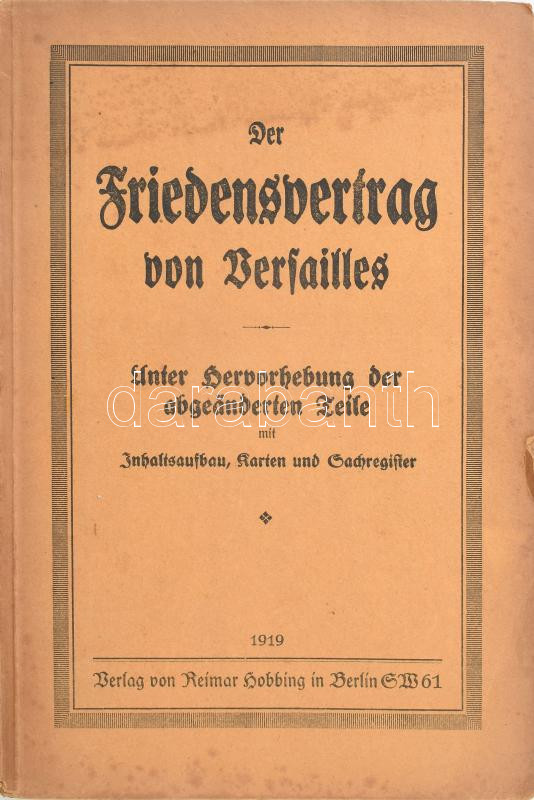 Der Friedenvertrag von Versailles. Unter Hervorhebung der abgeänderten... https://www.darabanth.com/en/457-Online-auction/457.0/Books/Books-History~1500020/Der-Friedenvertrag-von-Versailles-Unter-Hervorhebung-der-abgeanderten-Teile-mit-Inhaltsaufbau-Kar~II3053830