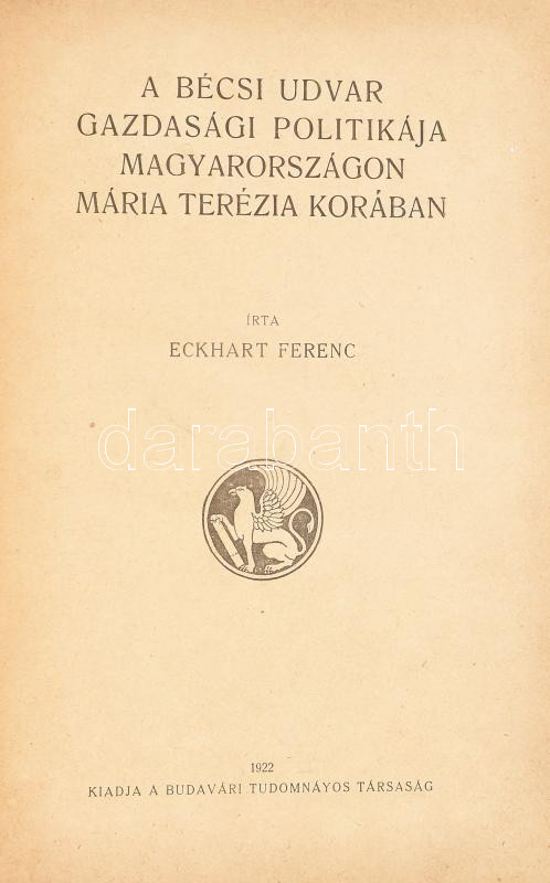 Eckhart Ferenc: A bécsi udvar gazdasági politikája Magyarországon Mári... https://www.darabanth.com/en/457-Online-auction/457.0/Books/Books-History~1500020/Eckhart-Ferenc-A-becsi-udvar-gazdasagi-politikaja-Magyarorszagon-Maria-Terezia-koraban-Bp-~II3059920