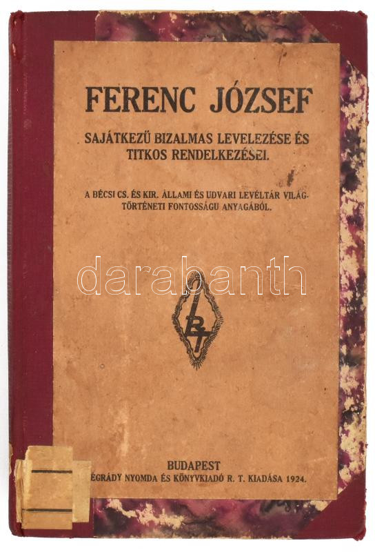 Ferenc József sajátkezű bizalmas levelezése és titkos rendelkezései. A... https://www.darabanth.com/en/457-Online-auction/457.0/Books/Books-History~1500020/Ferenc-Jozsef-sajatkezu-bizalmas-levelezese-es-titkos-rendelkezesei-A-Becsi-cs-es-kir-Al~II3060244