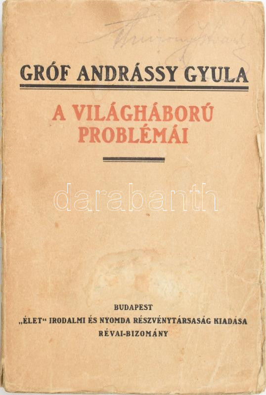 Gróf Andrássy Gyula: A világháború problémái. Bp., [1916], "Élet&... https://www.darabanth.com/en/457-Online-auction/457.0/Books/Books-History~1500020/Grof-Andrassy-Gyula-A-vilaghaboru-problemai-Bp-1916-Elet-Irodalmi-es-Nyomda-Rt-3~II3053842