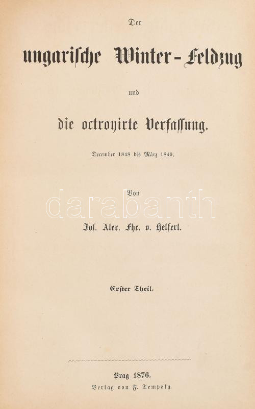 Helfert, Jos. Alex. Fhr. v.: Der ungarische Winter-Feldzug und die oct... https://www.darabanth.com/en/457-Online-auction/457.0/Books/Books-History~1500020/Helfert-Jos-Alex-Fhr-v-Der-ungarische-Winter-Feldzug-und-die-octroyirte-Verfassung-December-1~II3061906