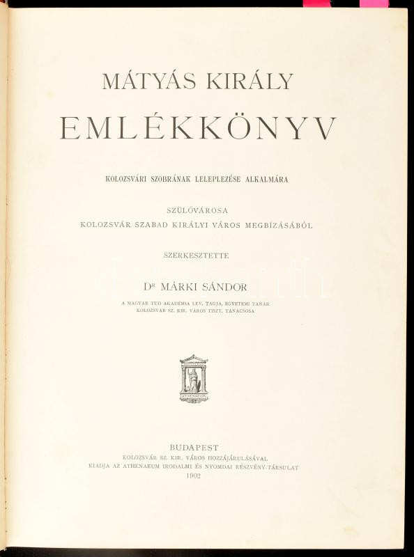 Márki Sándor (szerk.): Mátyás király emlékkönyv. Bp., 1902, Athenaeum....