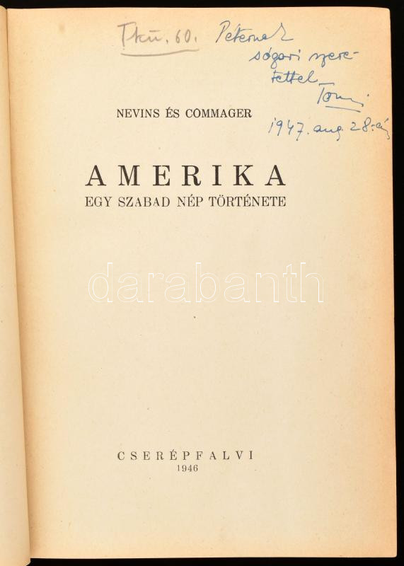 Nevins, [Allan] és Commager, [Henry]: Amerika. Egy szabad nép történet... https://www.darabanth.com/en/457-Online-auction/457.0/Books/Books-History~1500020/Nevins-Allan-es-Commager-Henry-Amerika-Egy-szabad-nep-tortenete-Bp-1946-Cserepfalvi~II3053853