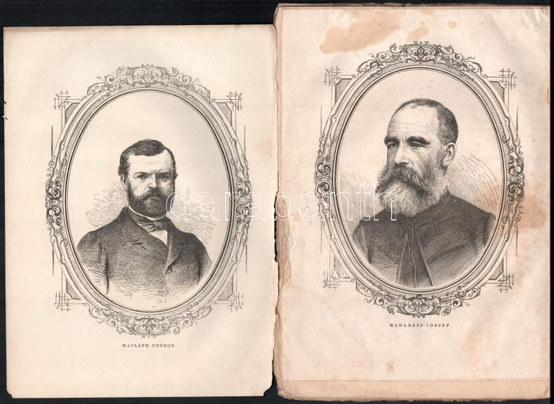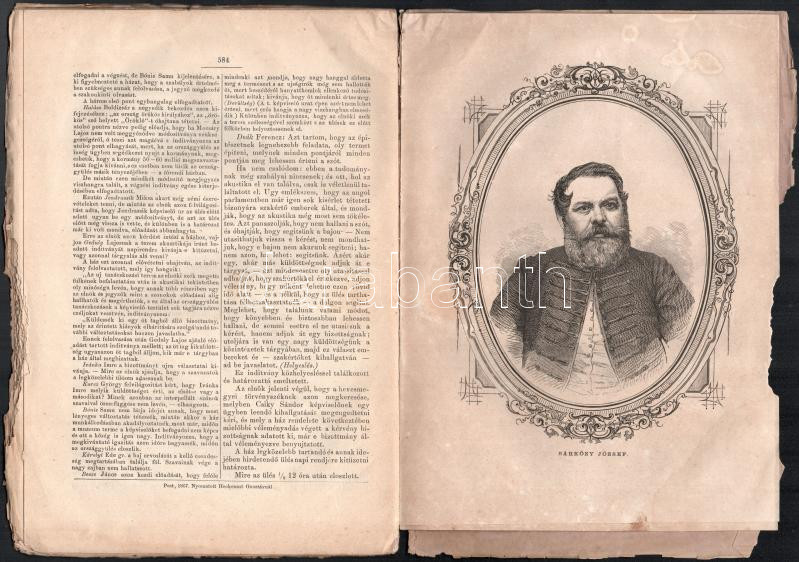 Országgyűlési emlékkönyv 1867. IX. füzet. Falk Miksa, Horváth Boldizsár, Jókai Mór, Kriza János, Pálffy Albert, Salamon Ferenc, Tóth Lőrincz, Urházy György s. t. közreműködésével. Pest, 1867, Heckenast Gusztáv, 521-584 p. + 9 t. A táblákon ismert személyekkel, a kor neves közéleti személyiségeivel. Kiadói papírkötés, szakadozott borítószélekkel, a hátsó borító sérült, hiányos, foltos, a táblák egy része kijár (5 db), szöveget nem érintő lapszéli sérülésekkel, hiányokkal, nagyrészt felvágatlan lapokkal.