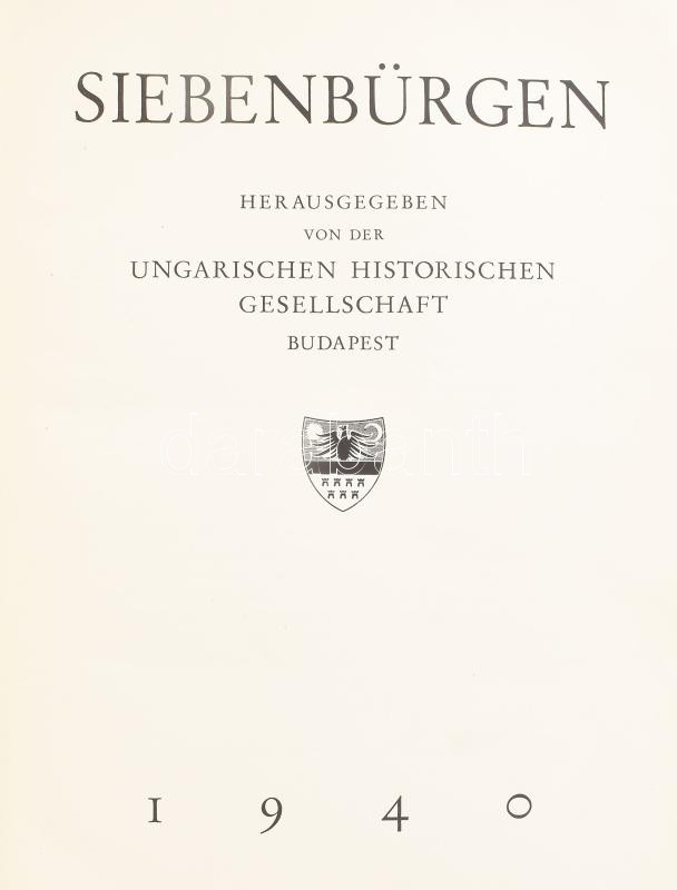 Siebenbürgen (Erdély.) Bearbeitet: József Deér. Bp., 1940, Ungarischen Historischen GesellSchaft (Magyar Történelmi Társulat), 283+(3) p.+ 136 (képtáblák) t.+ 20 (térképek) t. Német nyelven. Rendkívül gazdag, fekete-fehér és színes képanyaggal illusztrált. Kiadói aranyozott egészvászon-kötés, kopott borítóval, sérült gerinccel, hiányzó térkép-mellékletekkel.