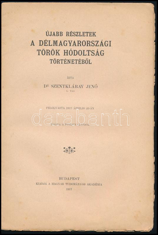 Szentkláray Jenő: Újabb részletek a délmagyarországi török hódoltság t... https://www.darabanth.com/en/457-Online-auction/457.0/Books/Books-History~1500020/Szentklaray-Jeno-Ujabb-reszletek-a-delmagyarorszagi-torok-hodoltsag-tortenetebol-Er~II3059868