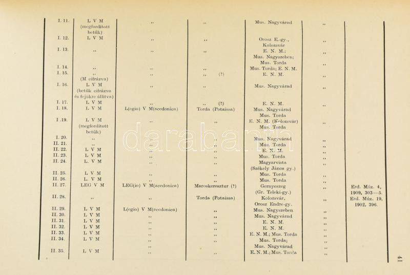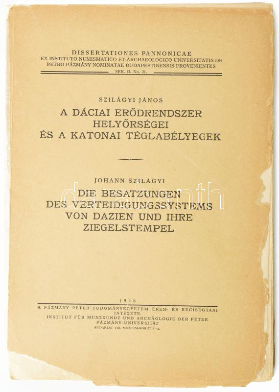 Szilágyi János: A dáciai erődrendszer helyőrségei és katonai téglabély... https://www.darabanth.com/en/457-Online-auction/457.0/Books/Books-History~1500020/Szilagyi-Janos-A-daciai-erodrendszer-helyorsegei-es-katonai-teglabelyegei-Dissertationes-~II3003116