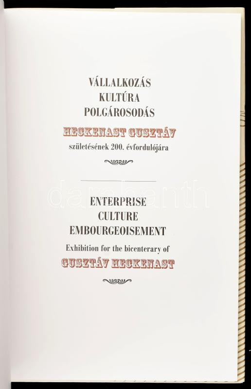 Vállalkozás, kultúra, polgárosodás. Heckenast Gusztáv születésének 200. évfordulójára. / Enterprise, Culture, Embourgeoisement. Exhibition for the Bicentenary of Gusztáv Heckenast. Szerk.: Benkő Andrea, Lipták Dorottya. Bp., 2011, Országos Széchényi Könyvtár. Gazdag képanyaggal illusztrálva. Magyar és angol nyelven. Kiadói kartonált papírkötés, kiadói papír védőborítóban, jó állapotban.