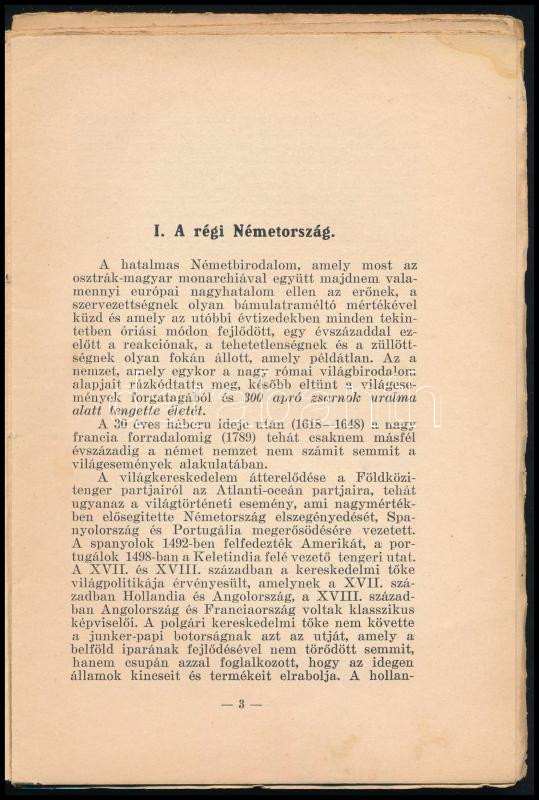 Weltner Jakab A németbirodalom. Háborús nagyhatalmak. Bp., 1915. Népszava. Kiadói papírborítóval 103p. szétvált fűzéssel