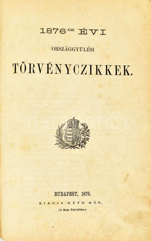 https://www.darabanth.com/en/457-Online-auction/457.0/Books/Books-Law~1500019/1876-ik-evi-Orszaggyulesi-Torvenyczikkek-Budapest-kiadja-Rath-Mor-Bp-1876-Korabeli-fel~II2997743