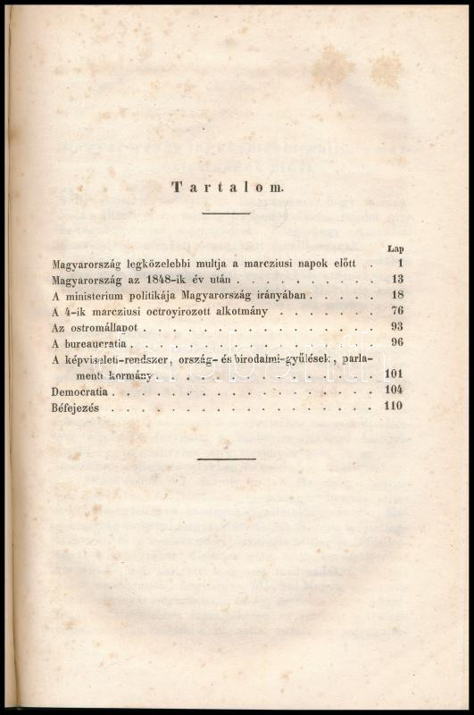 Somssich Pál: Magyarországnak és királyának törvényes joga. Bécs, 1850., Jasper, Hügel és Manz,(Klopf Udalrik- és Eurich Sándor-ny.), X+2+136 p. Átkötött modern bordázott félbőr-kötés, eredeti restaurált elülső borítóval, kissé foxing foltos lapokkal, (körbevágott?)