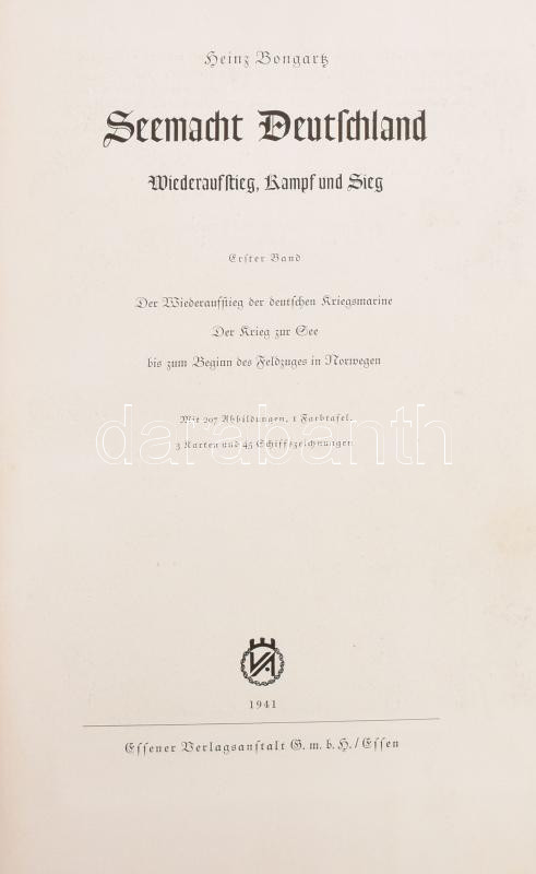 Heinz Bongart: Seemacht Deutschland. Essen 1941 Essener Verlagsanstalt... https://www.darabanth.com/en/457-Online-auction/457.0/Books/Books-Military~1500022/Heinz-Bongart-Seemacht-Deutschland-Essen-1941-Essener-Verlagsanstalt-Kiadoi-vaszonkotesben-2~II3054510