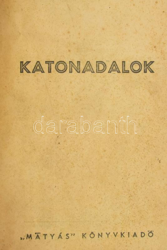 https://www.darabanth.com/en/457-Online-auction/457.0/Books/Books-Military~1500022/Katonadalok-Bp-en-Matyas-konyvkiado-32p-Modern-papirboritoval~II2979799