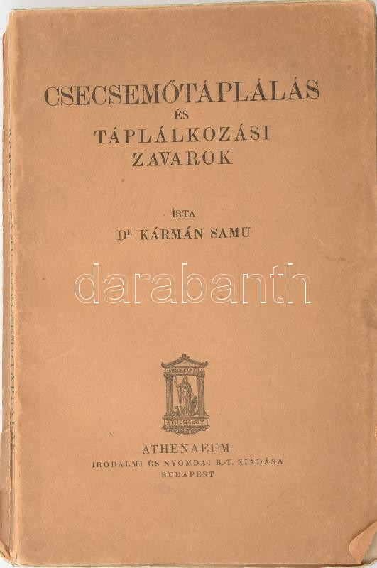 Dr. Kármán Samu: Csecsemőtáplálás és táplálkozási zavarok. Bp., [1930], Athenaeum, 175+(1) p. Kiadói papírkötés, sérült, a hátsó borító levált, belül nagyrészt jó állapotban, tulajdonosi névbejegyzéssel.